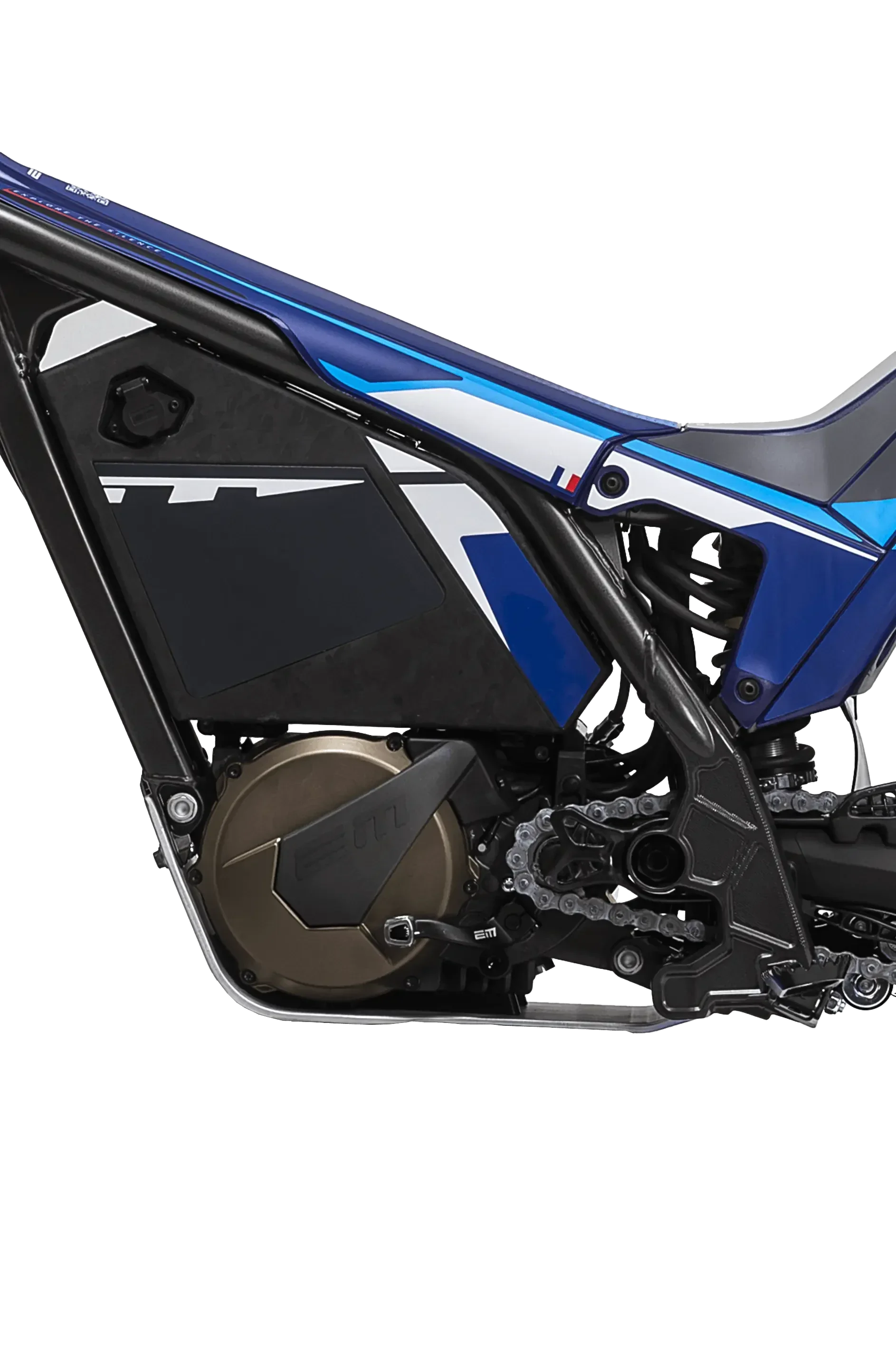 EM has designed a new engine offering inertia, torque (1400Nm) and power (up to 18kW) simply unmatched in trials! The arrival of the 4-speed gearbox offers unlimited possibilities in both areas - trials and excursion.